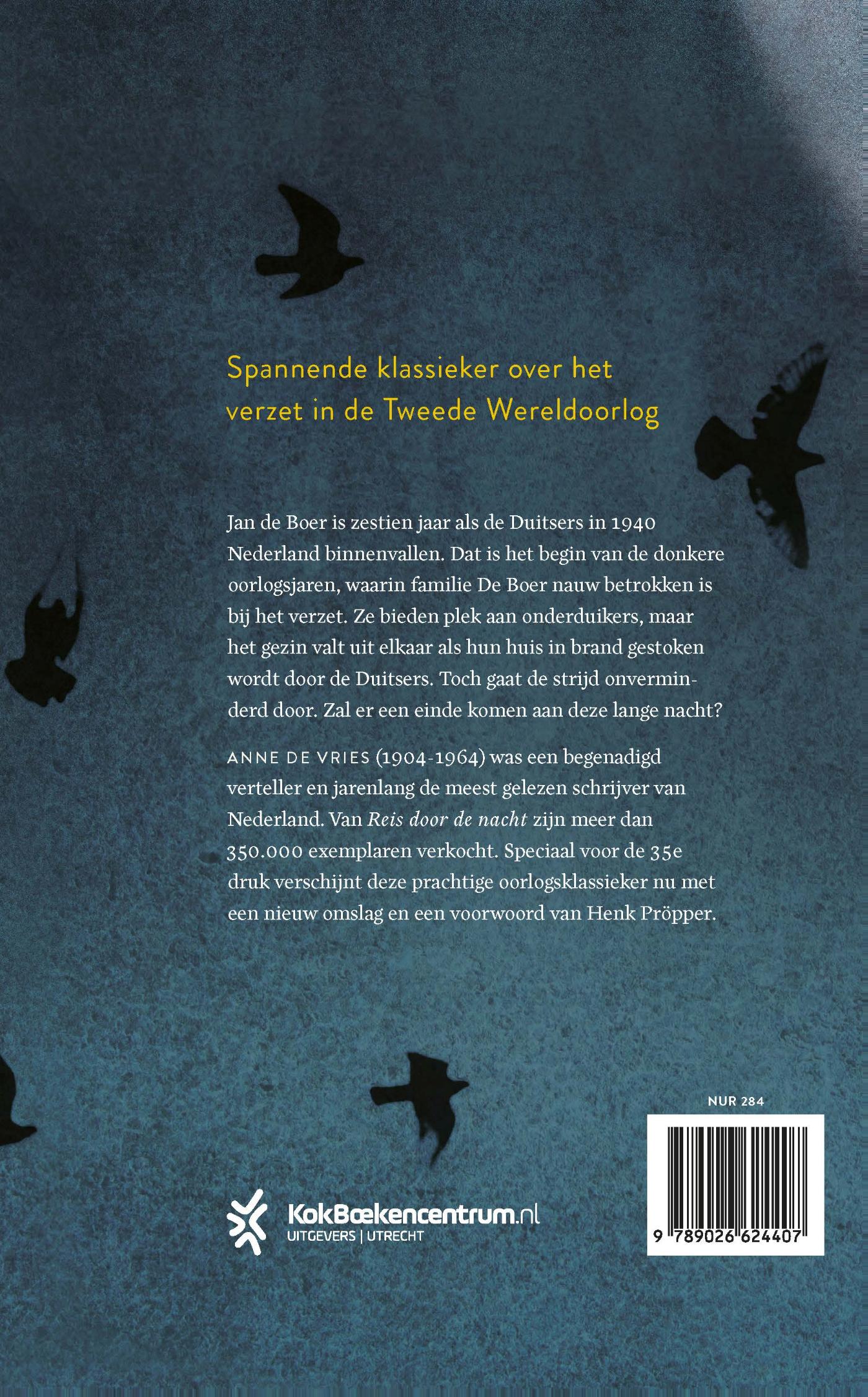 Zeventig jaar na het verschijnen van het eerste deel is de omnibus van de oorlogsklassieker ‘Reis door de nacht’, geschreven door Anne de Vries, toe aan zijn vijfendertigste druk. ‘Reis door de nacht’ vertelt het verhaal van een Nederlands gezin in de Tweede Wereldoorlog, dat vanaf het begin betrokken is bij het verzet. Hoofdpersoon is Jan de Boer, een jongen van 16 jaar. Hij merkt algauw dat zijn vader bezig is met verzetswerk en besluit langzaam maar zeker om daar zelf ook aan mee te doen, met gevaar voor eigen leven.