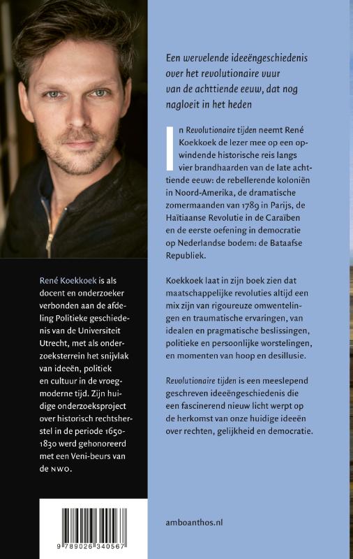 In Revolutionaire tijden neemt René Koekkoek de lezer mee op een opwindende historische reis langs vier brandhaarden van de late achttiende eeuw: de rebellerende koloniën in Noord-Amerika, de dramatische zomermaanden van 1789 in Parijs, de Haïtiaanse Revolutie in de Caraïben en de eerste oefening in democratie op Nederlandse bodem: de Bataafse Republiek.
