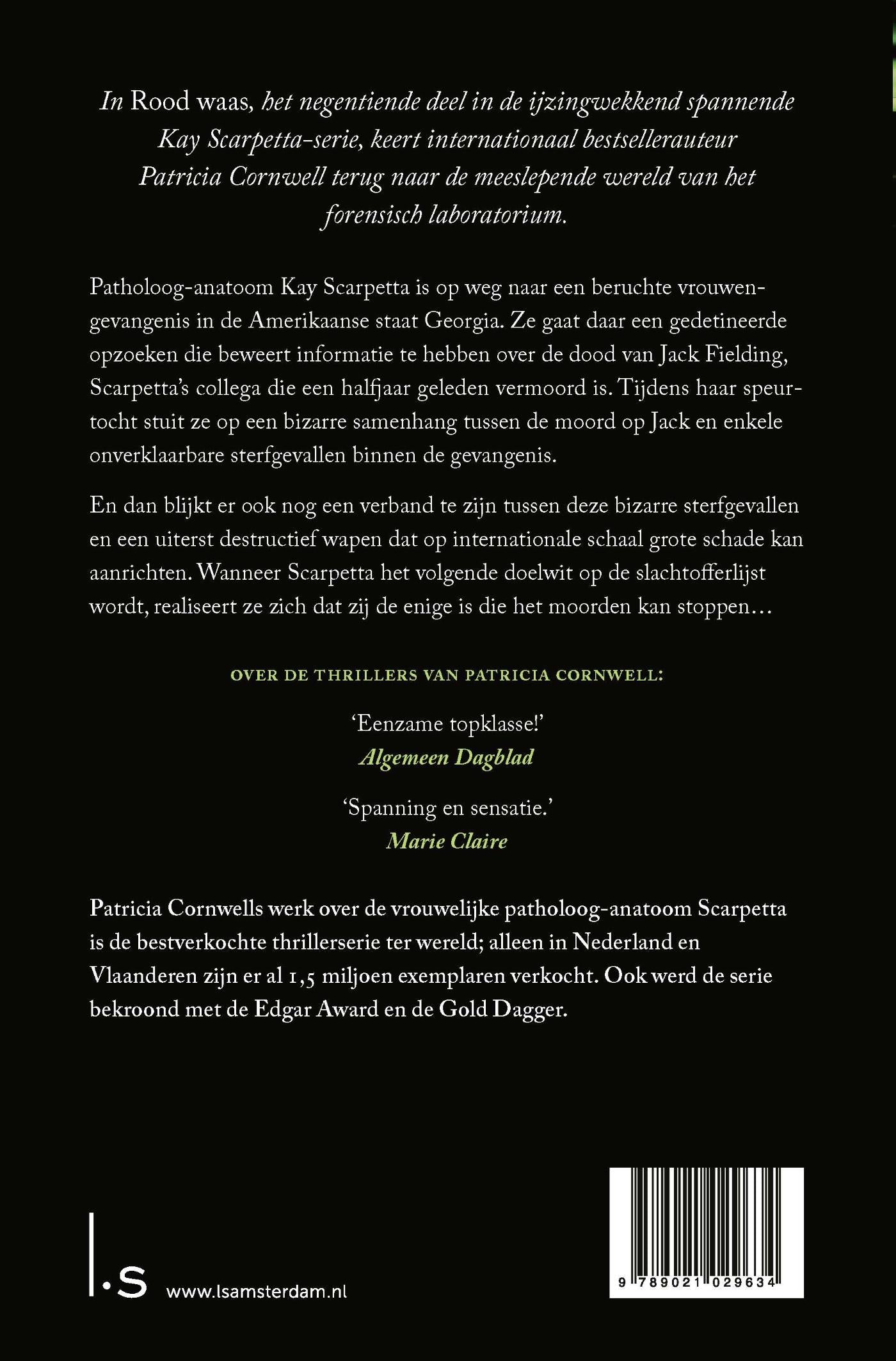 Rood waas is het negentiende boek uit de bloedstollende bestsellerserie rond patholoog-anatoom Kay Scarpetta van auteur Patricia Cornwell. Deze serie betekende Patricia Cornwells doorbraak als grondlegger van de pathologisch-anatomische thriller.