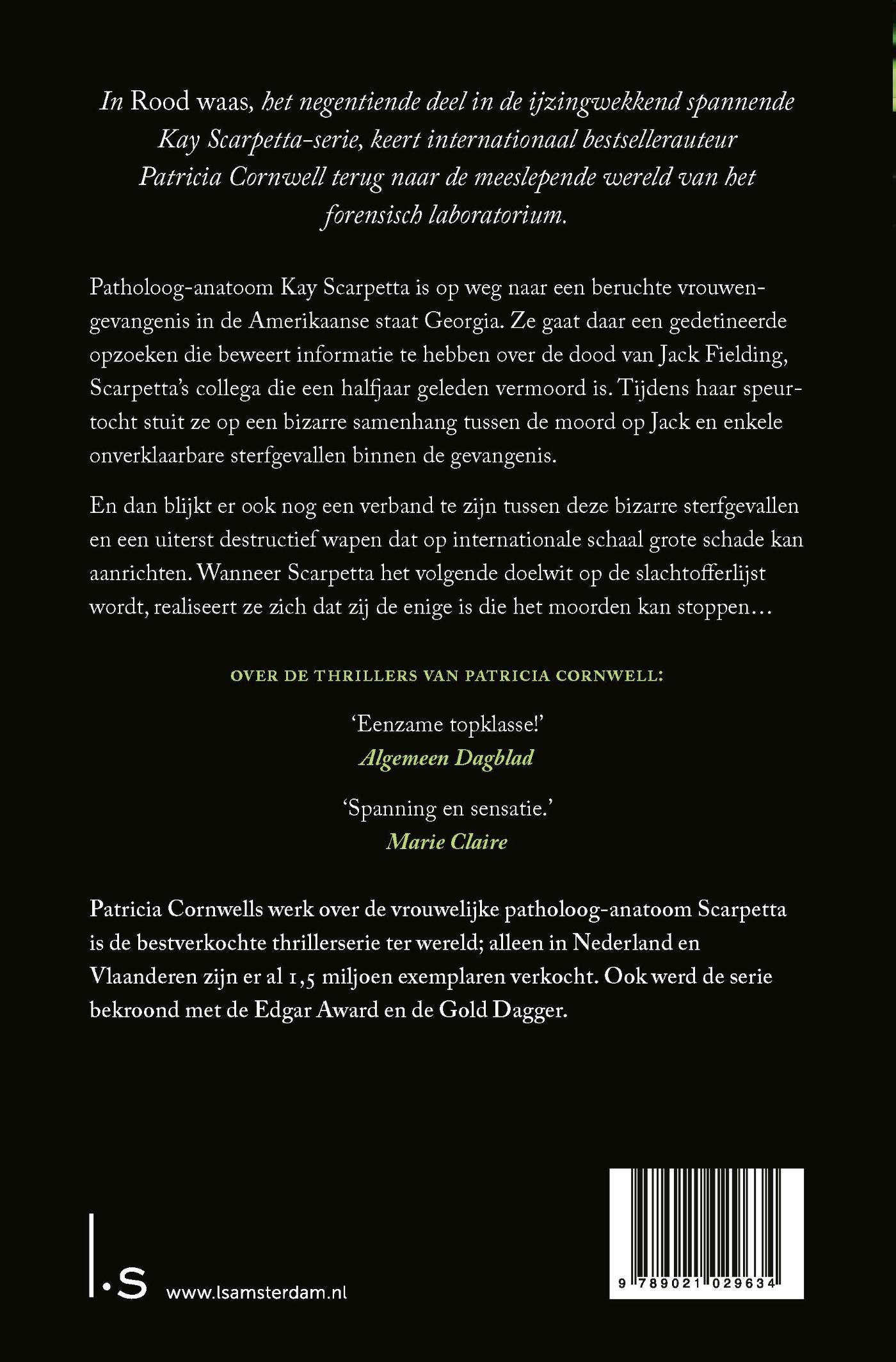 (POD) Rood waas is het negentiende boek uit de bloedstollende bestsellerserie rond patholoog-anatoom Kay Scarpetta van auteur Patricia Cornwell. Deze serie betekende Patricia Cornwells doorbraak als grondlegger van de pathologisch-anatomische thriller.