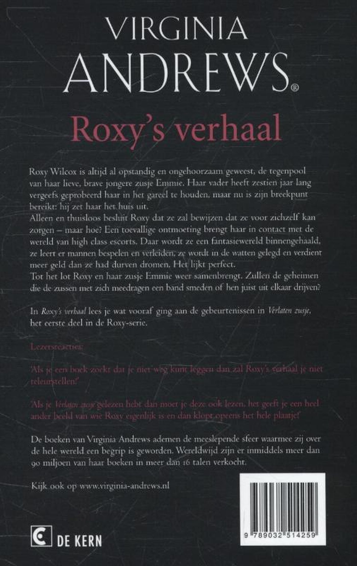`Roxy s verhaal is het spannende tweede en laatste deel in de 'Roxy-serie' van Virginia Andrews, die begon met 'Verlaten zusje'.
