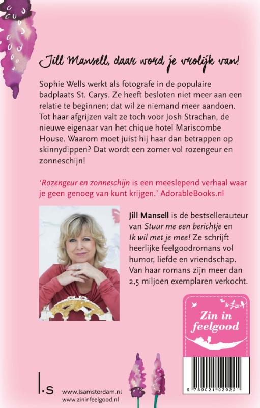 Rozengeur en zonneschijn gaat over Sophie Wells. Ze werkt als fotografe in de populaire badplaats St. Carys. Aan een relatie wil ze niet meer beginnen; dat kan ze niemand meer aandoen. Tot haar afgrijzen valt ze toch voor Josh Strachan, de nieuwe eigenaar van het chique hotel Mariscombe House. Waarom moet juist hij haar dan betrappen op skinny-dipping? Dat wordt een zomer vol rozengeur en zonneschijn!