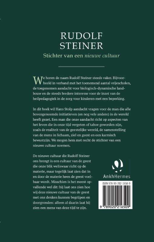 In dit boek wil Hans Stolp aandacht vragen voor de man die alle bovengenoemde initiatieven (en nog vele andere) in de wereld heeft gezet. Een man die onze aandacht richt op aspecten van het leven die in onze tijd vergeten of taboe geworden zijn, zoals de realiteit van de geestelijke wereld, de samenstelling van de mens in lichaam, ziel en geest en een karmisch bewustzijn. Om zijn visie mogen we hem met recht de stichter van een nieuwe cultuur noemen.