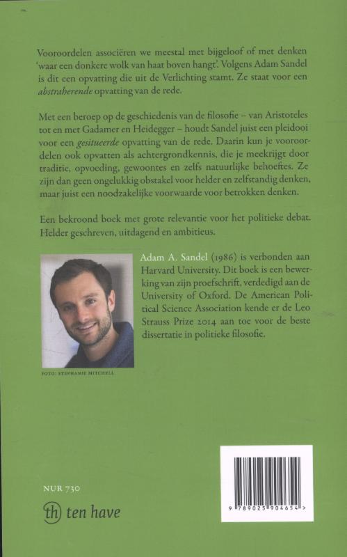Met een beroep op de geschiedenis van de filosofie – van Aristoteles tot en met Gadamer en Heidegger – houdt Sandel juist een pleidooi voor een gesitueerde opvatting van de rede. Daarin kun je vooroordelen ook opvatten als achtergrondkennis, die je meekrijgt door traditie, opvoeding, gewoontes en zelfs natuurlijke behoeftes. Ze zijn dan geen ongelukkig obstakel voor helder en zelfstandig denken, maar juist een noodzakelijke voorwaarde voor betrokken denken.