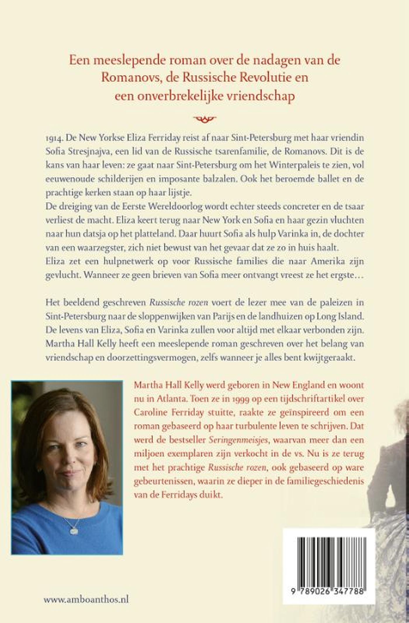 Russische rozen van bestsellerauteur Martha Hall Kelly, bekend van Seringenmeisjes, is een meeslepende historische roman over drie vrouwen, met elkaar verbonden door de Russische Revolutie. Het boek is het tweede deel in de Woolsey-Ferriday Trilogie.