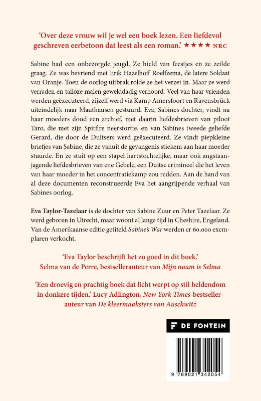 Sabine had een onbezorgde jeugd. Ze hield van feestjes en ze zeilde graag. Ze was bevriend met Erik Hazelhoff Roelfzema, de latere Soldaat van Oranje. Toen de oorlog uitbrak rolde ze het verzet in. Maar ze werd verraden en werd talloze malen gewelddadig verhoord. Via Kamp Amersfoort en Ravensbrück kwam ze de laatste oorlogsmaanden in het gruwelijke Mauthausen terecht. Eva, Sabines dochter, vindt na haar moeders dood een archief, met daarin liefdesbrieven van piloot Taro, die met zijn Spitfire neerstortte, en van Sabines tweede geliefde Gerard, die door de Duitsers werd geëxecuteerd. Ze vindt piepkleine briefjes van Sabine, die ze vanuit de gevangenis stiekem aan haar moeder stuurde. En ze stuit op een stapel hartstochtelijke, maar ook angstaanjagende liefdesbrieven van ene Gebele, een Duitse kapo die in Mauthausen Sabines leven zou redden. Aan de hand van al deze documenten reconstrueerde Eva het nooit eerder vertelde en aangrijpende verhaal van Sabines oorlog.