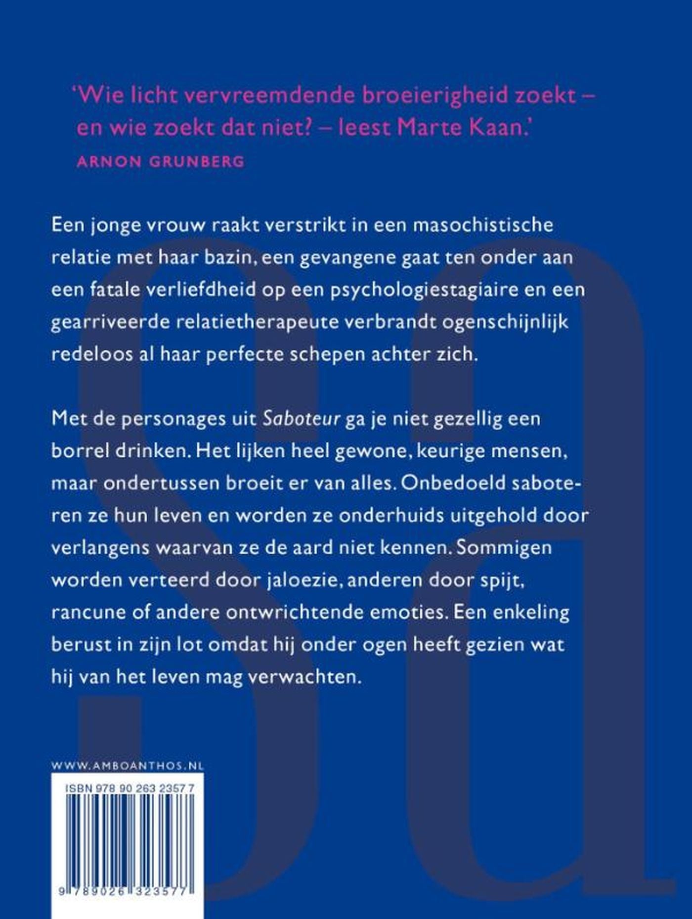 Arnon Grunberg over Saboteur: `Wie licht vervreemdende broeierigheid zoekt en wie zoekt dat niet? leest Marte Kaan.