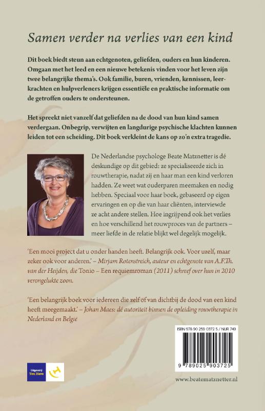 'Samen verder' van Beate Matznetter, psycholoog, rouwbegeleider en ervaringsdeskundige, helpt je om meer te begrijpen van de processen die er spelen tijdens deze specifieke periode van rouw.