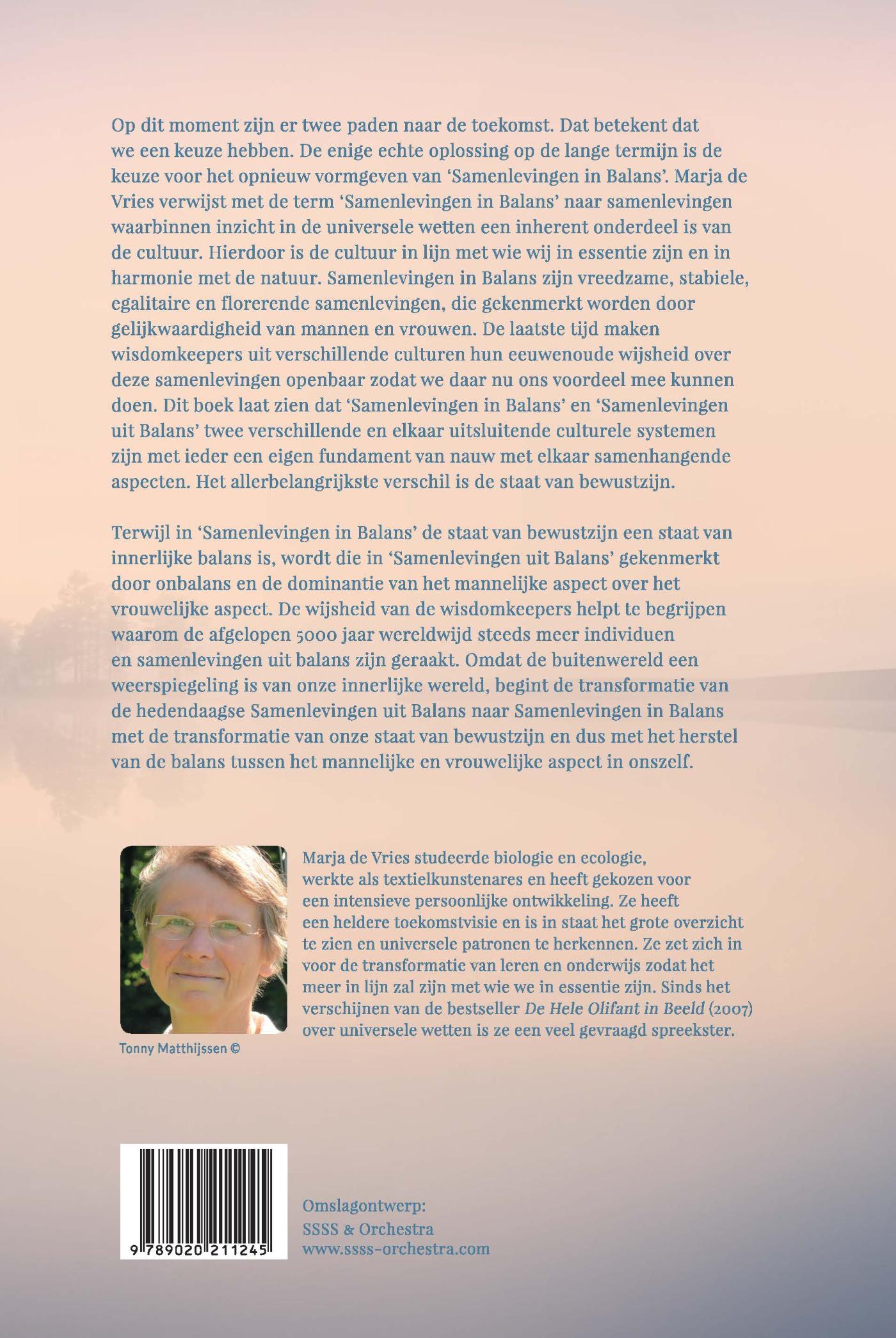 Dit boek laat zien dat Samenlevingen in Balans en Samenlevingen uit Balans twee verschillende en elkaar uitsluitende culturele systemen zijn met ieder een eigen fundament van nauw met elkaar samenhangende aspecten. Het allerbelangrijkste verschil is de staat van bewustzijn. Terwijl in Samenlevingen in Balans de staat van bewustzijn een staat van innerlijke balans is, wordt die in Samenlevingen uit Balans gekenmerkt door onbalans en de dominantie van het mannelijke aspect over het vrouwelijke aspect.
