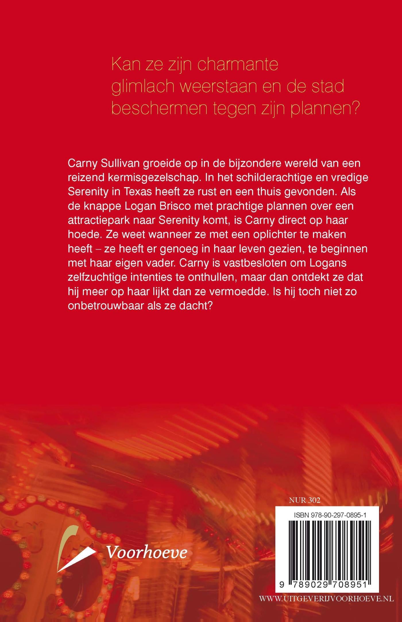 Carny Sullivan groeide op in de bijzondere wereld van een reizend kermisgezelschap. In het schilderachtige en vredige Serenity in Texas heeft ze rust en een thuis gevonden. Als de knappe Logan Brisco met prachtige plannen over een attractiepark naar Serenity komt, is Carny direct op haar hoede. Ze weet wanneer ze met een oplichter te maken heeft – ze heeft er genoeg in haar leven gezien, te beginnen met haar eigen vader. Carny is vastbesloten om Logans zelfzuchtige intenties te onthullen, maar dan ontdekt ze dat hij meer op haar lijkt dan ze had gedacht. Is hij toch niet zo onbetrouwbaar als ze dacht?