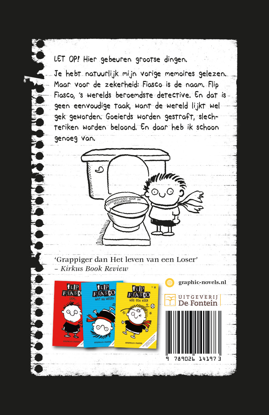 'Flip Fiasco – Schoon genoeg' is het vierde deel in de succesvolle graphicnovelreeks Flip Fiasco, geschreven door Stephan Pastis.