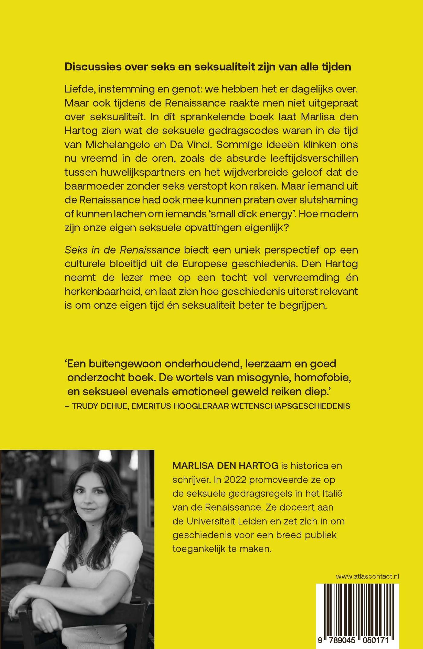 De orgasmekloof, consent en gender: we hebben het er dagelijks over. Maar ook tijdens de Renaissance raakte men niet uitgepraat over seksualiteit. In dit sprankelende boek laat Marlisa den Hartog zien wat de seksuele gedragscodes waren in de tijd van Michelangelo en Da Vinci. Sommige ideeën klinken ons nu vreemd in de oren, zoals de absurde leeftijdsverschillen tussen huwelijkspartners en het wijdverbreide geloof dat de baarmoeder zonder seks verstopt kon raken. Maar iemand uit de Renaissance had ook mee kunnen praten over slutshaming of kunnen lachen om iemands ‘small dick energy’. Hoe modern zijn onze eigen seksuele opvattingen eigenlijk?