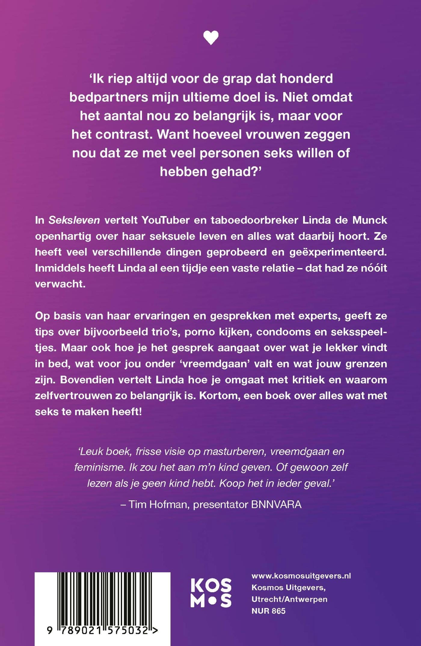 In Seksleven vertelt YouTuber, spreker en taboedoorbreker Linda de Munck openhartig over haar seksuele leven en alles wat daarbij komt kijken. In haar seksuele verleden heeft ze veel verschillende dingen geprobeerd en geëxperimenteerd. Inmiddels heeft Linda al een tijdje een vaste relatie. Op basis van haar ervaringen én informatie van experts, geeft ze tips over uiteenlopende onderwerpen als trio’s, pornokijken, condoomgebruik en seksspeeltjes. Maar ook over hoe je het gesprek met je vriend of vriendin aangaat over wat je lekker vindt in bed, wat voor jou onder ‘vreemdgaan’ valt en wat jouw grenzen zijn. Bovendien vertelt ze hoe je omgaat met kritiek en waarom zelfvertrouwen zo belangrijk is. Kortom, een boek over seks en alles wat met seks te maken heeft!