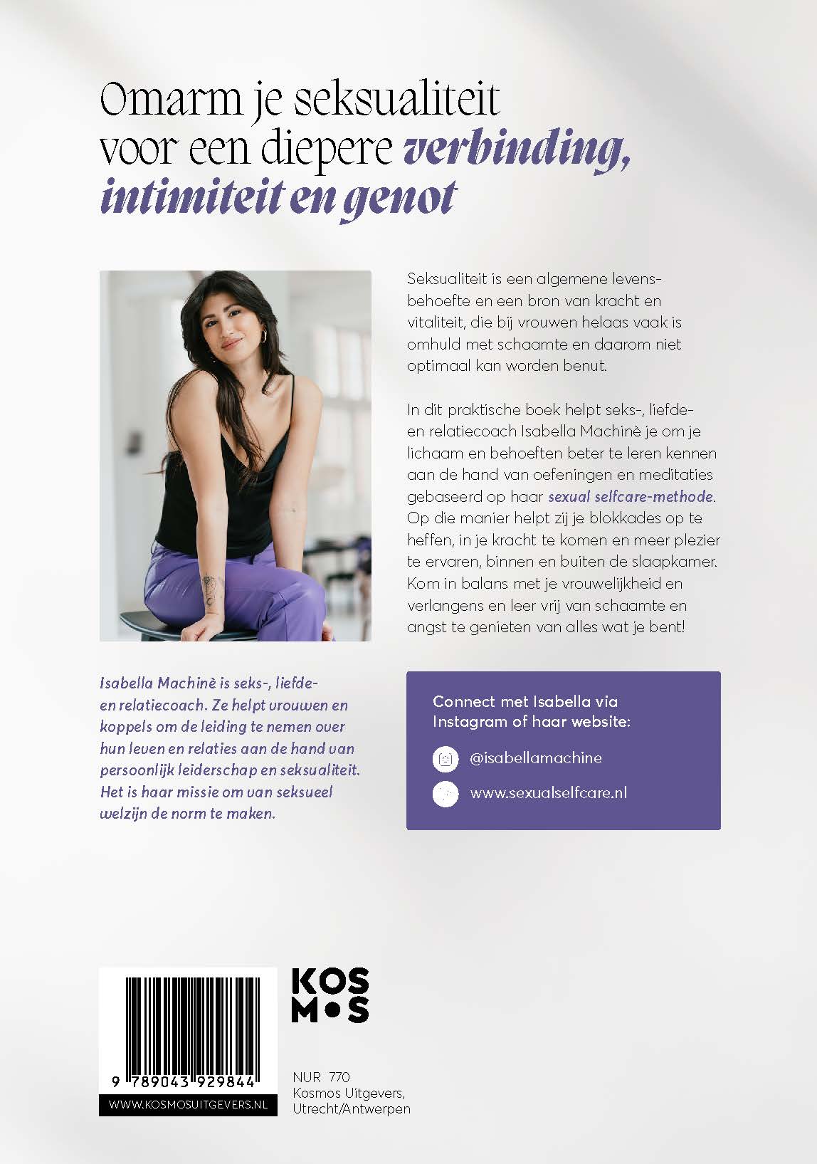 Seks is een algemene gezondheidsbehoefte en een bron van kracht en vitaliteit. Daarom zou het verbinden met de eigen seksualiteit een belangrijk onderdeel moeten worden van je selfcareroutine: het draagt tenslotte bij aan je (seksueel) welzijn! In dit praktische boek helpt Isabella Machinè je om je lichaam en behoeften beter te leren kennen aan de hand van oefeningen en meditaties. Met Sexual selfcare creëer je een veilige plek voor jezelf waarin ruimte is voor je verlangens, ontdek je wat jouw zintuigen prikkelt en leer je om schaamte en verwachtingen los te laten. Om zo mentale blokkades op te heffen, in je kracht te komen en meer plezier te ervaren in de seksuele relatie met jezelf en anderen.