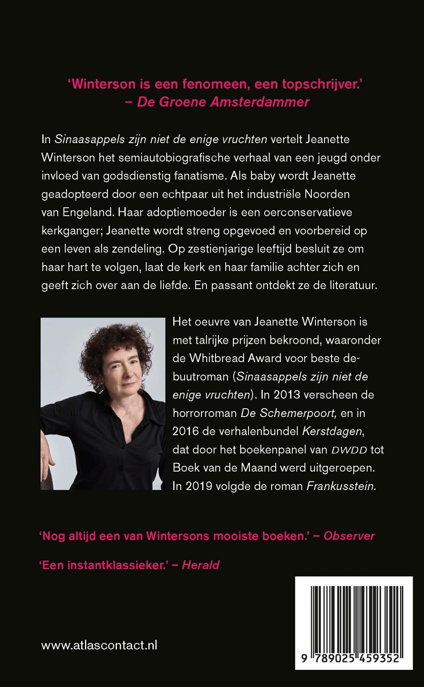 In ‘Sinaasappels zijn niet de enige vruchten’ vertelt Jeanette Winterson het semiautobiografische verhaal van een jeugd onder invloed van godsdienstig fanatisme. Als baby wordt Jeanette geadopteerd door een echtpaar uit het industriële Noorden van Engeland. Haar adoptiemoeder is een oerconservatieve kerkganger; Jeanette wordt streng opgevoed en voorbereid op een leven als zendeling. Op zestienjarige leeftijd besluit ze om haar hart te volgen, laat de kerk en haar familie achter zich en geeft zich over aan de liefde. En passant ontdekt ze de literatuur.