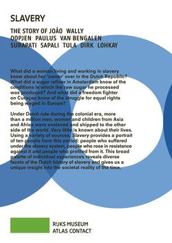 Drawing on various sources, Slavery portrays ten people from this period of time: the people who suffered under the system of slavery, those who rose up against it and those who profited from it. This wide range of individual experiences shows the many facets of the history of Dutch slavery and allows us a unique insight into the societal reality of that time.