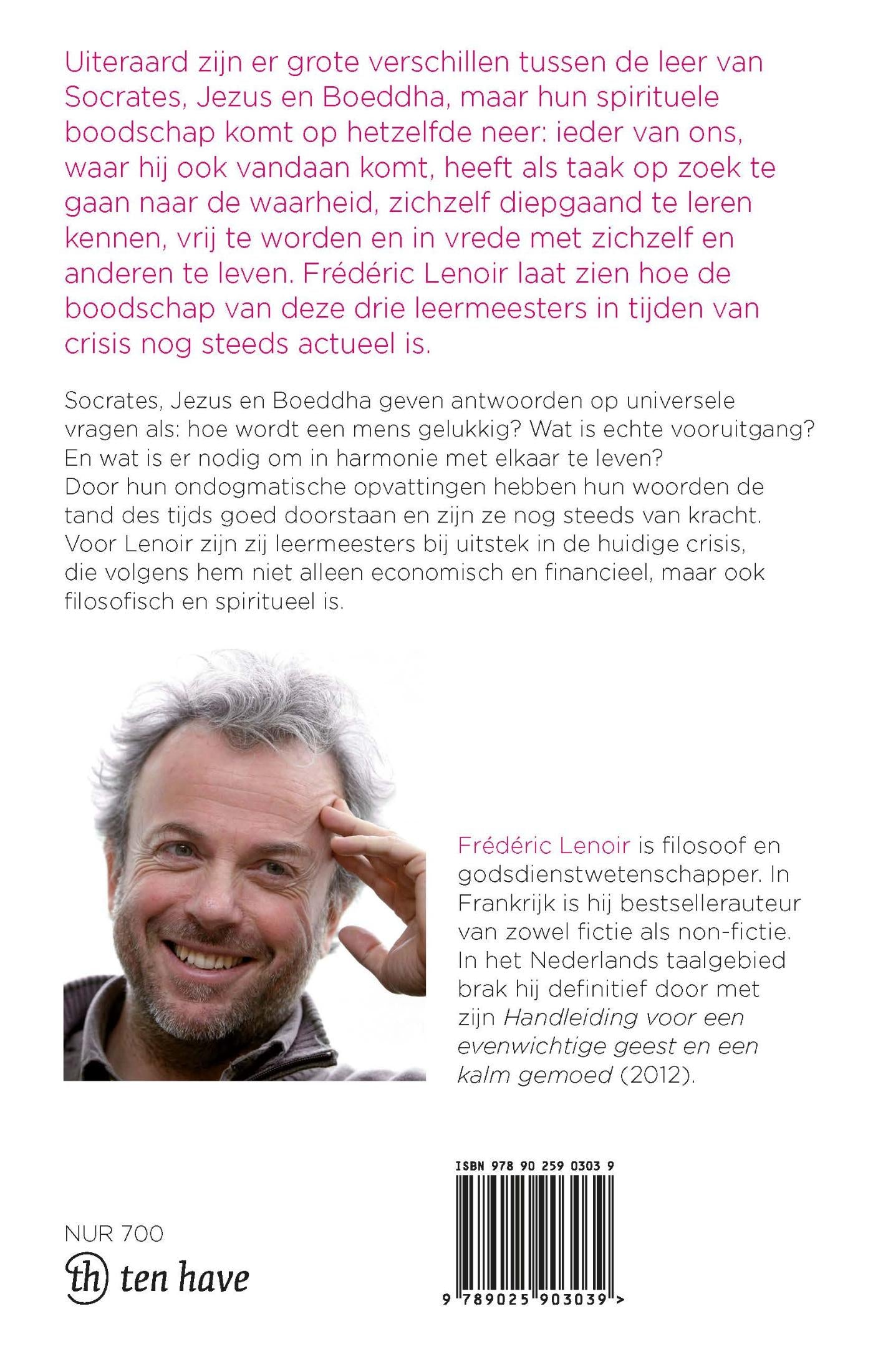 Uiteraard zijn er grote verschillen tussen de leer van Socrates, Jezus en Boeddha, maar hun spirituele boodschap komt op hetzelfde neer: ieder van ons, waar hij ook vandaan komt, heeft als taak op zoek te gaan naar de waarheid, zichzelf diepgaand te leren kennen, vrij te worden en in vrede met zichzelf en anderen te leven. De Franse bestsellerauteur Frédéric Lenoir laat zien hoe de boodschap van deze drie leermeesters in tijden van crisis nog steeds actueel is.