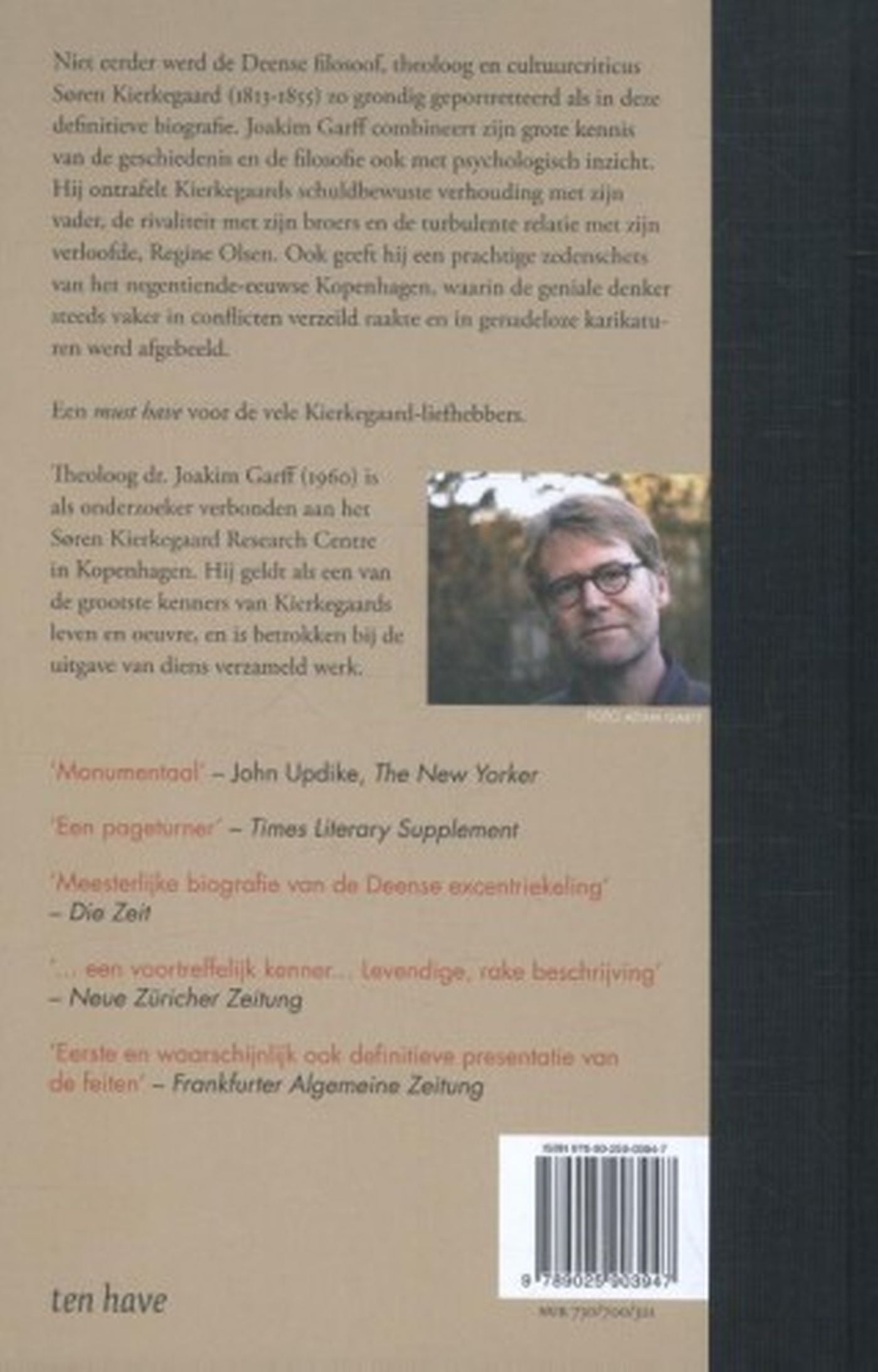 In Søren Kierkegaard: Een biografie ontrafelt Joakim Garff Kierkegaards schuldbewuste verhouding tot zijn vader, de rivaliteit met zijn broers en de turbulente relatie met zijn verloofde Regine Olsen. Ook geeft hij een prachtige zedenschets van het 19e-eeuwse Kopenhagen, waar Kierkegaard steeds vaker conflicten kreeg en in genadeloze karikaturen werd afgebeeld.