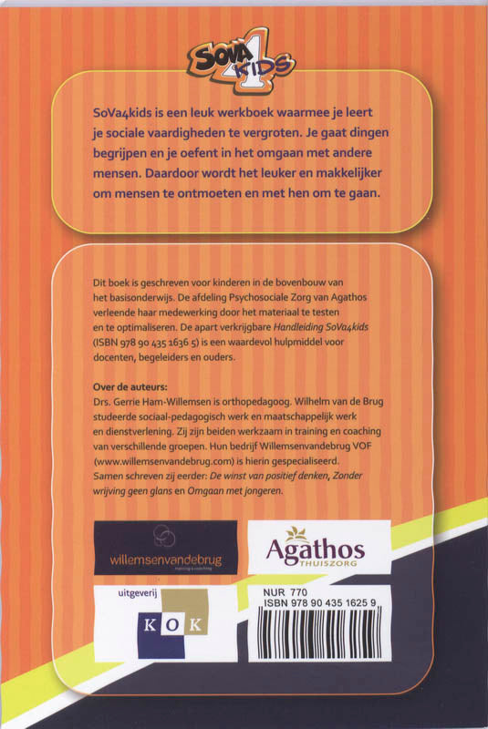SoVa4kids is een leuk en stimulerend werkboek waarmee kinderen spelenderwijs hun sociale vaardigheden vergroten. Inzicht en oefening zijn de sleutelwoorden. De methode is geschreven voor de bovenbouw van het basisonderwijs en uitvoerig getest en geoptimaliseerd.