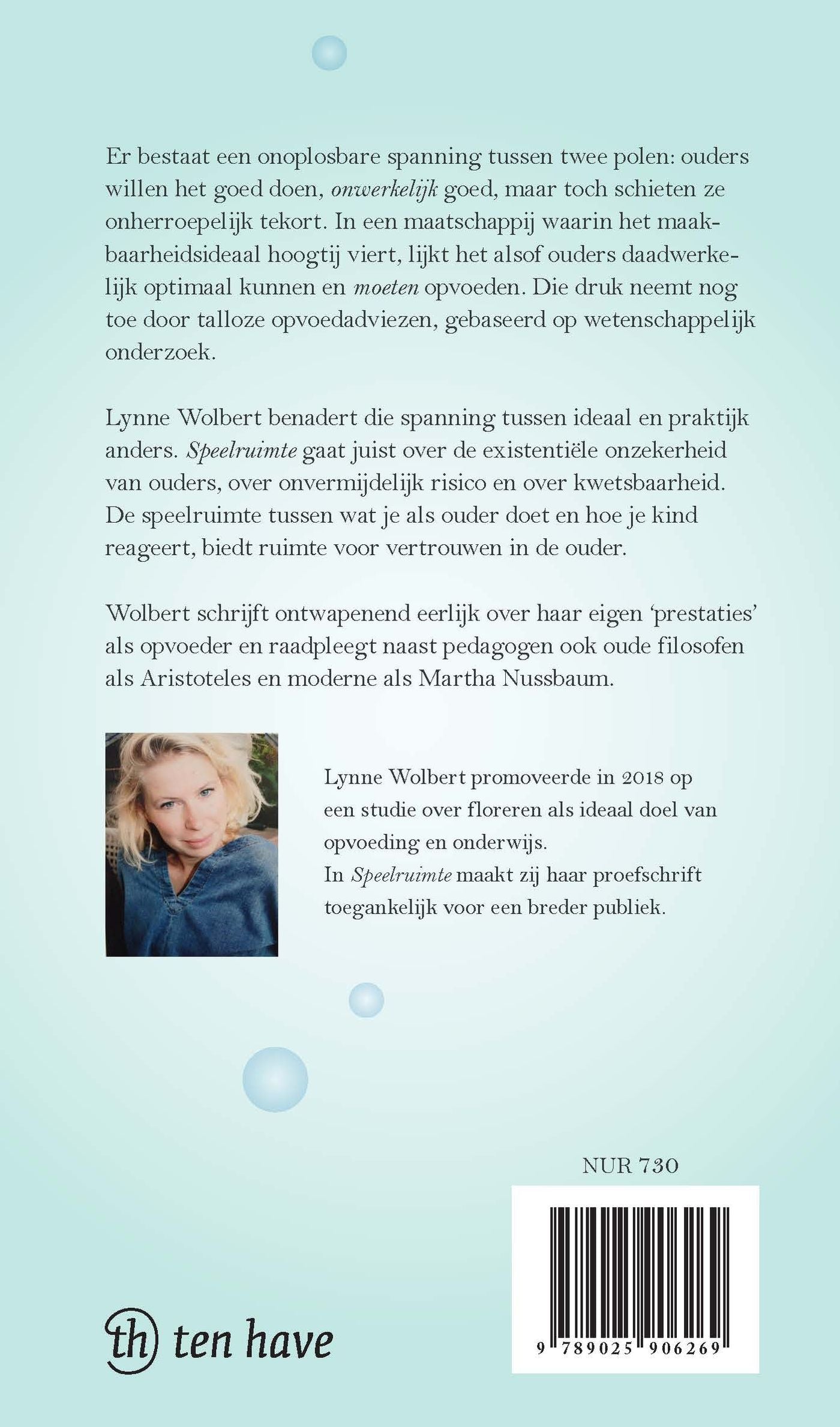 In ‘Speelruimte’ geeft Lynne Wolbert een frisse kijk op ouderschap en opvoeding. Het gaat Lynne Wolbert niet om opvoedtips. Ze toont op basis van onderzoek aan dat ook de wetenschap niet de ultieme garantie biedt om kinderen te laten floreren. Het resultaat van opvoeding is niet maakbaar en risico’s zijn onvermijdelijk. Maar in plaats van stress kan dit inzicht juist vertrouwen geven: er zit altijd speelruimte tussen wat de opvoeder doet en hoe het kind reageert.