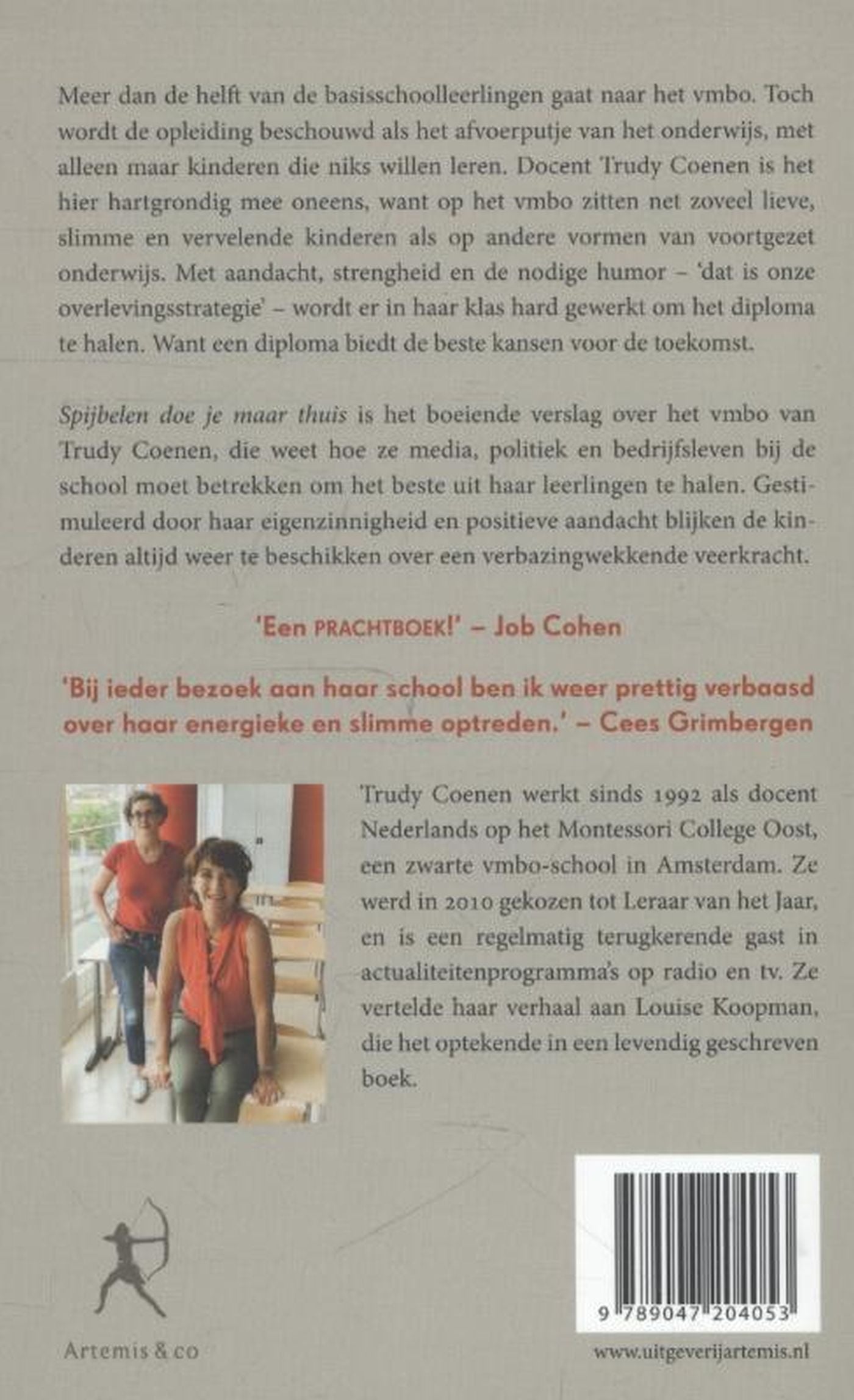 Spijbelen doe je maar thuis laat zien hoe Trudy Coenen voor haar leerlingen opkomt, niet alleen op school, maar ook in de media, de politiek en het bedrijfsleven. Maar het gaat vooral over hoe Trudy zich tot haar leerlingen verhoudt en over de kinderen zelf, die met positieve aandacht en werkelijke interesse telkens weer blijken te beschikken over een onverwoestbare veerkracht.