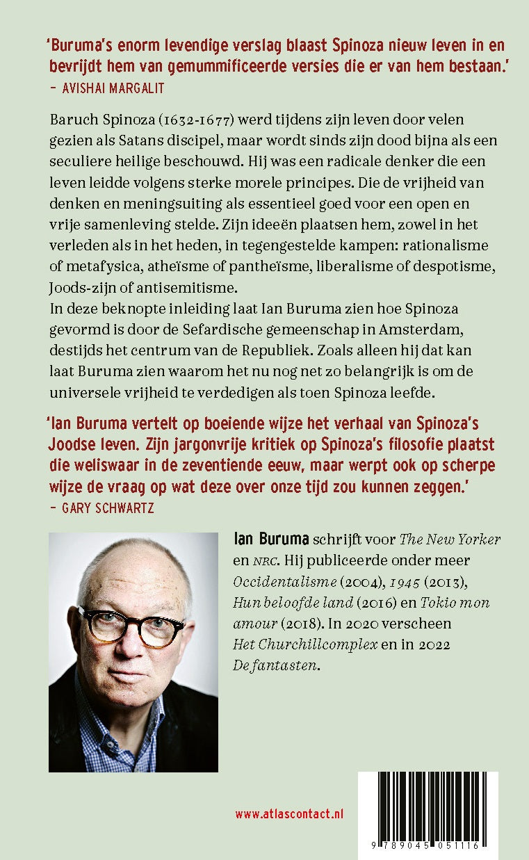 In deze beknopte inleiding laat Ian Buruma zien hoe Spinoza gevormd is door de Sefardische gemeenschap in Amsterdam, destijds het centrum van de Republiek. Zoals alleen Buruma dat kan laat hij zien waarom verdediging van de universele vrijheid in onze eigen tijd net zo belangrijk is als in die van Spinoza.