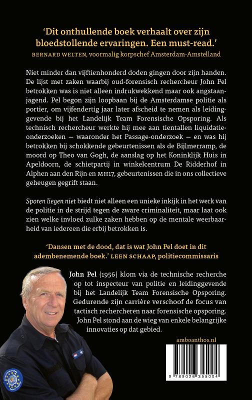 Sporen liegen niet van John Pel biedt een unieke inkijk in het werk van een forensisch rechercheur in de strijd tegen de zware criminaliteit. De lijst met zaken waarbij oud-forensisch rechercheur John Pel in zijn carrière betrokken was, is niet alleen indrukwekkend maar ook angstaanjagend.