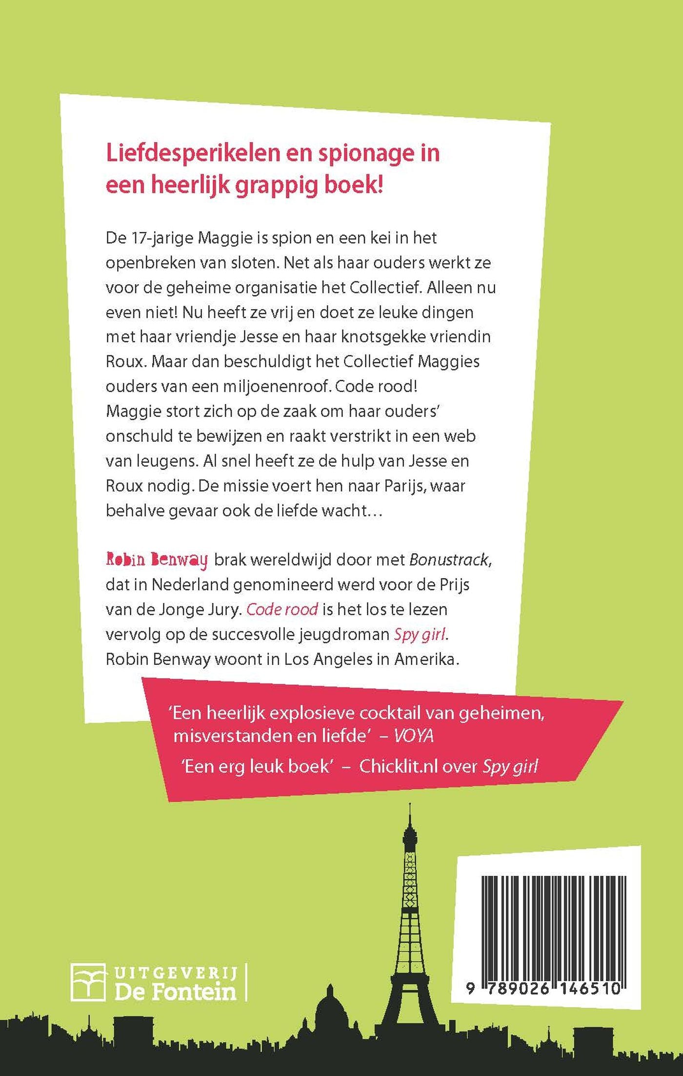 De 17-jarige Maggie werkt voor de geheime organisatie het Collectief. Alleen nu even niet. Sinds de vorige missie is haar hart vol van haar vriendje Jesse en haar beste vriendin Roux. Maar dan worden haar ouders door het Collectief vals beschuldigd van roof. Code rood! Maggie stort zich op de zaak en raakt verstrikt in een wespennest vol bedrog. Met Jesse en Roux reist ze naar Parijs om hun tegenstander uit te schakelen. Maar Parijs is ook de stad van de liefde... Robin Benway debuteerde met Bonustrack, dat wereldwijd een bestseller werd. Daarop volgde het succesvolle Girlpower. Code rood is het vervolg op Spy girl. Robin Benway woont in Los Angeles en is verslaafd aan koffie en muziek.