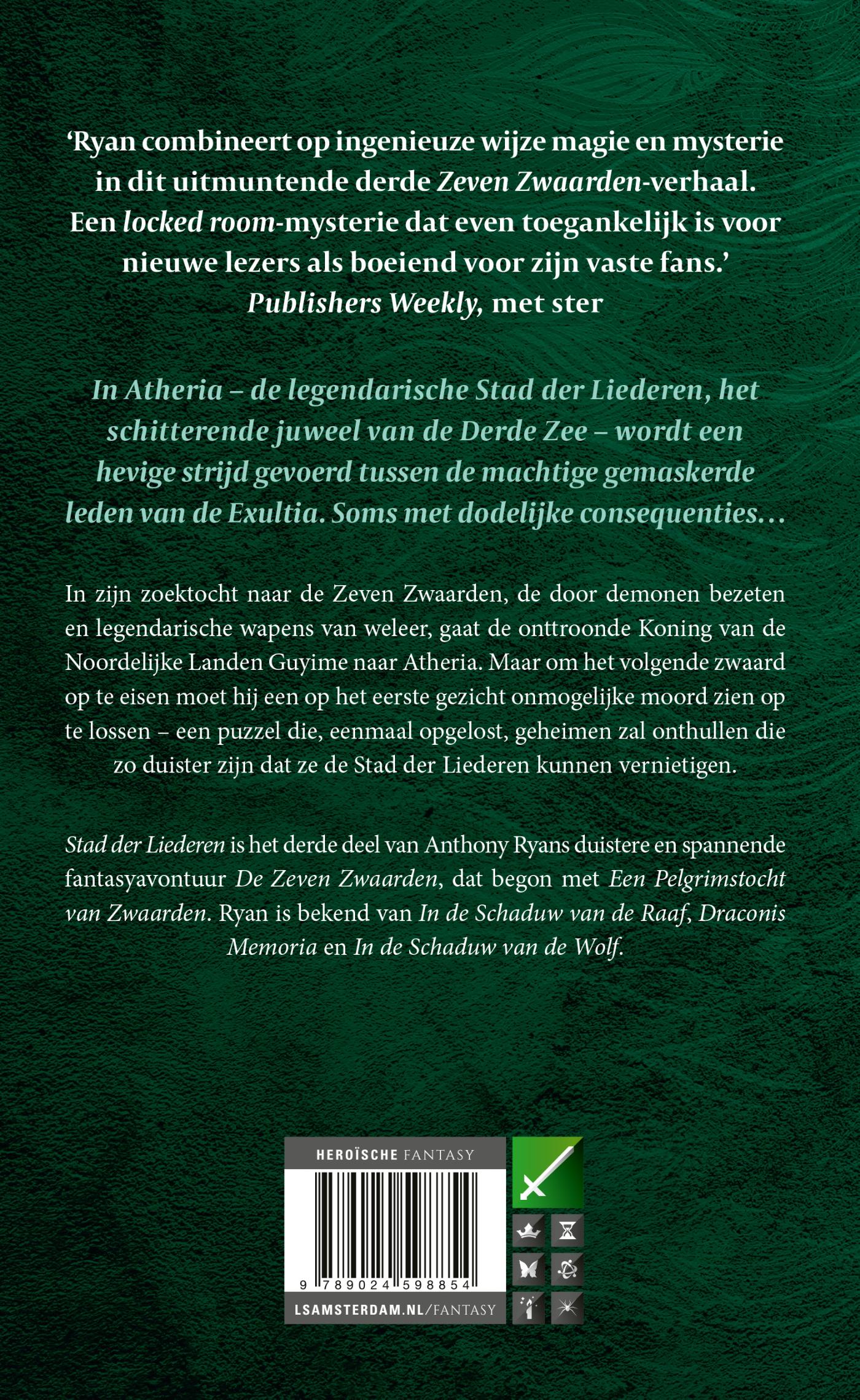 In Stad van liederen wordt het epische verhaal van De Zeven Zwaarden vervolgd, een mysterie vol actie en duistere magie van de bestsellerauteur van de Draconis Memoria-trilogie.