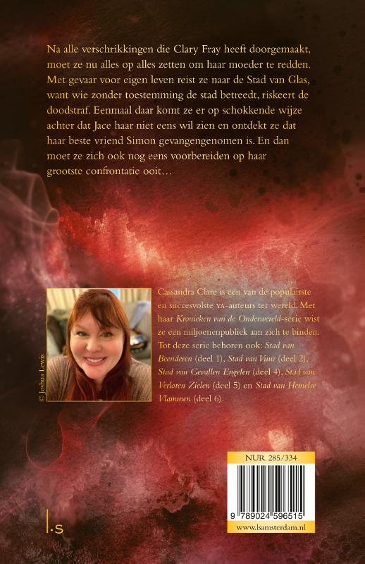 Met haar Kronieken van de Onderwereld-serie (The Mortal Instruments) wist Cassandra Clare een miljoenenpubliek aan zich te binden. Lees ook: Stad van Beenderen (deel 1), Stad van Vuur (deel 2), Stad van Gevallen Engelen (deel 4), Stad van Verloren Zielen (deel 5) en Stad van Hemelse Vlammen (deel 6).