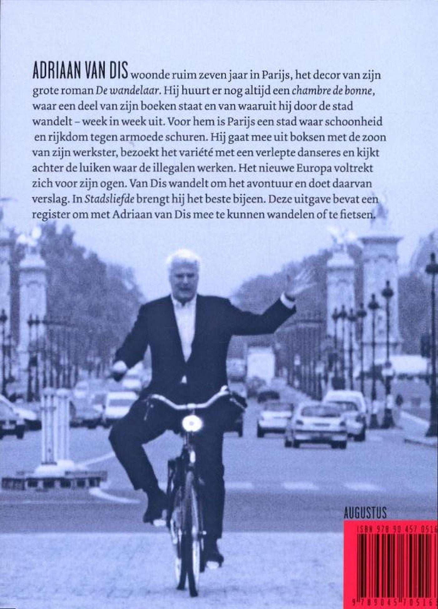 Adriaan van Dis woonde ruim zeven jaar in Parijs en nog steeds voelt hij zich verbonden met die stad en probeert hij de helft van zijn tijd er door te brengen. Hij huurt er een chambre de bonne, waar een deel van zijn boeken staat en van waaruit hij door de stad wandelt week in week uit. Hij is er onzichtbaar en verkent wijken waar gewoonlijk geen toeristen komen. Voor hem is Parijs een altijd veranderende stad: gekleurd, verscheurd en vol verborgen geschiedenissen. Hij gaat mee uit boksen met de zoon van zijn werkster uit Sri Lanka, bezoekt het variété met een verlepte danseres, dwaalt met oude getuigen langs beladen adressen en kijkt achter de luiken waar de illegalen werken. Het nieuwe Europa voltrekt zich voor zijn ogen. Van Dis wandelt om het avontuur en doet daarvan verslag in dagboek en verhalen. In Stadsliefde brengt hij het beste bijeen.