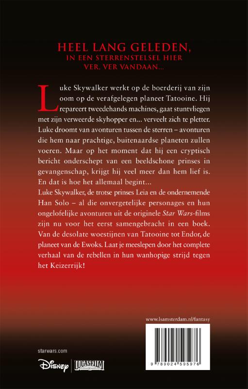 Luke Skywalker, de trotse prinses Leia en de ondernemende Han Solo – al die onvergetelijke personages en hun ongelofelijke avonturen uit de originele Star Wars-films zijn nu voor het eerst samengebracht in een boek. Van de desolate woestijnen van Tatooine tot Endor, de planeet van de Ewoks. Laat je meeslepen door het complete verhaal van de rebellen in hun wanhopige strijd tegen het Keizerrijk!