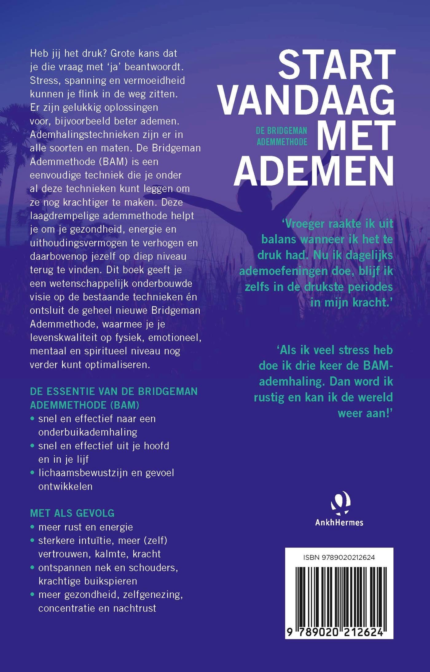 In 'Start vandaag met ademen' geven Robert Bridgeman en Marleen van den Hout je alle tools in handen om met behulp van een hele nieuwe ademmethode je levenskwaliteit te optimaliseren. Ademhalingstechnieken zijn er in alle soorten en maten. Ademspecialisten als Iceman Wim Hof, de Oekraïense wetenschapper Buyteko en sportcoach Koen de Jong hebben ieder hun eigen invalshoek.