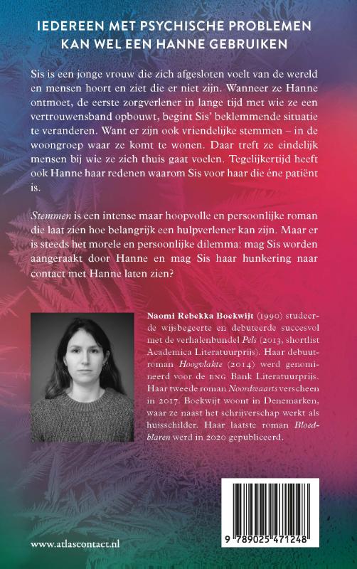 Stemmen is een intense maar hoopvolle en persoonlijke roman die laat zien hoe belangrijk een hulpverlener kan zijn. Maar er is steeds het morele en persoonlijke dilemma: mag Sis worden aangeraakt door Hanne en mag Sis haar hunkering naar contact met Hanne laten zien?