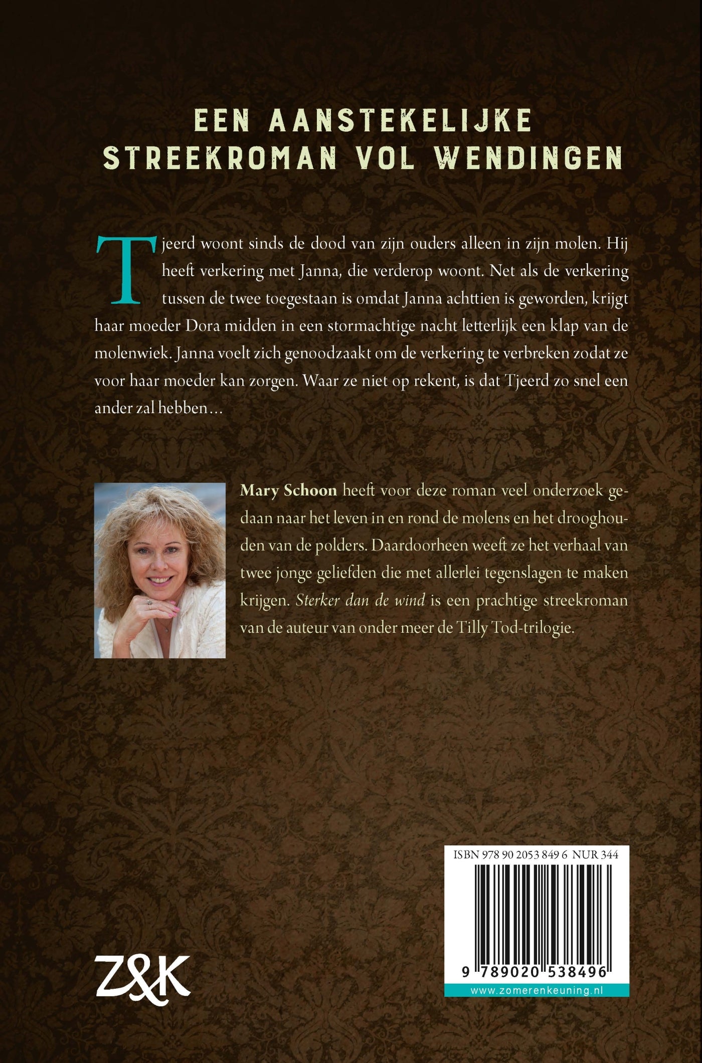 'Sterker dan de wind' van Mary Schoon gaat over twee jonge mensen die dicht bij elkaar zijn, maar nooit écht nader tot elkaar lijken te komen. Tjeerd woont sinds de dood van zijn ouders alleen in zijn molen. Hij heeft verkering met Janna, die verderop woont. Janna’s moeder Dora vindt het saai op het platteland en zoekt overal vertier, totdat ze midden in de nacht terugkomt en letterlijk een klap van de molenwiek krijgt. Janna verbreekt de verkering om voor haar moeder te zorgen. Waar ze niet op rekent, is dat Tjeerd zo snel een ander zal hebben… Mary Schoon brengt met 'Sterker dan de wind' een aanstekelijke streekroman vol wendingen.