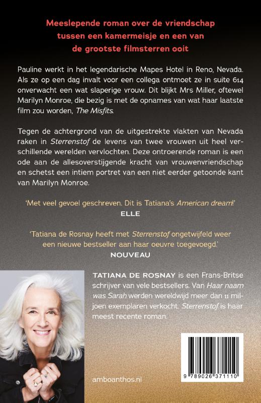 Tegen de achtergrond van de uitgestrekte vlakten van Nevada raken in Sterrenstof de levens van twee vrouwen uit heel verschillende werelden vervlochten. Deze ontroerende roman is een ode aan de allesoverstijgende kracht van vrouwenvriendschap en schetst een intiem portret van een niet eerder getoonde kant van Marilyn Monroe.