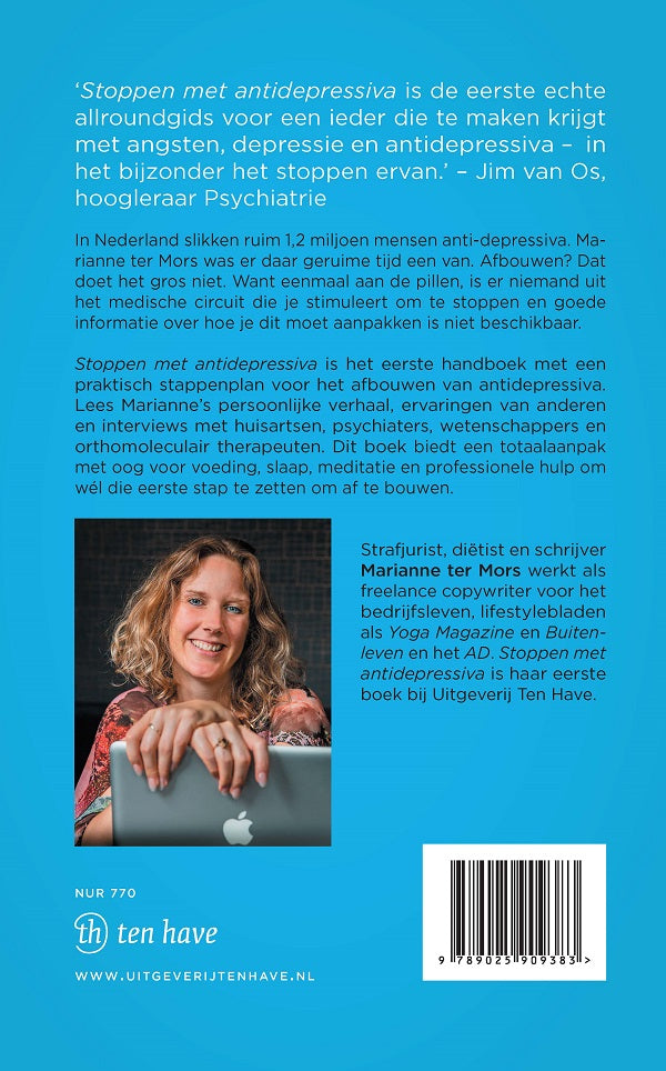 Stoppen met antidepressiva is het eerste handboek met een praktisch stappenplan voor het afbouwen van antidepressiva. Lees Marianne’s persoonlijke verhaal, ervaringen van anderen en interviews met huisartsen, psychiaters, wetenschappers en orthomolucair therapeuten. Dit boek biedt een totaalaanpak met oog voor voeding, slaap, meditatie en professionele hulp om wél die eerste stap te zetten om af te bouwen.