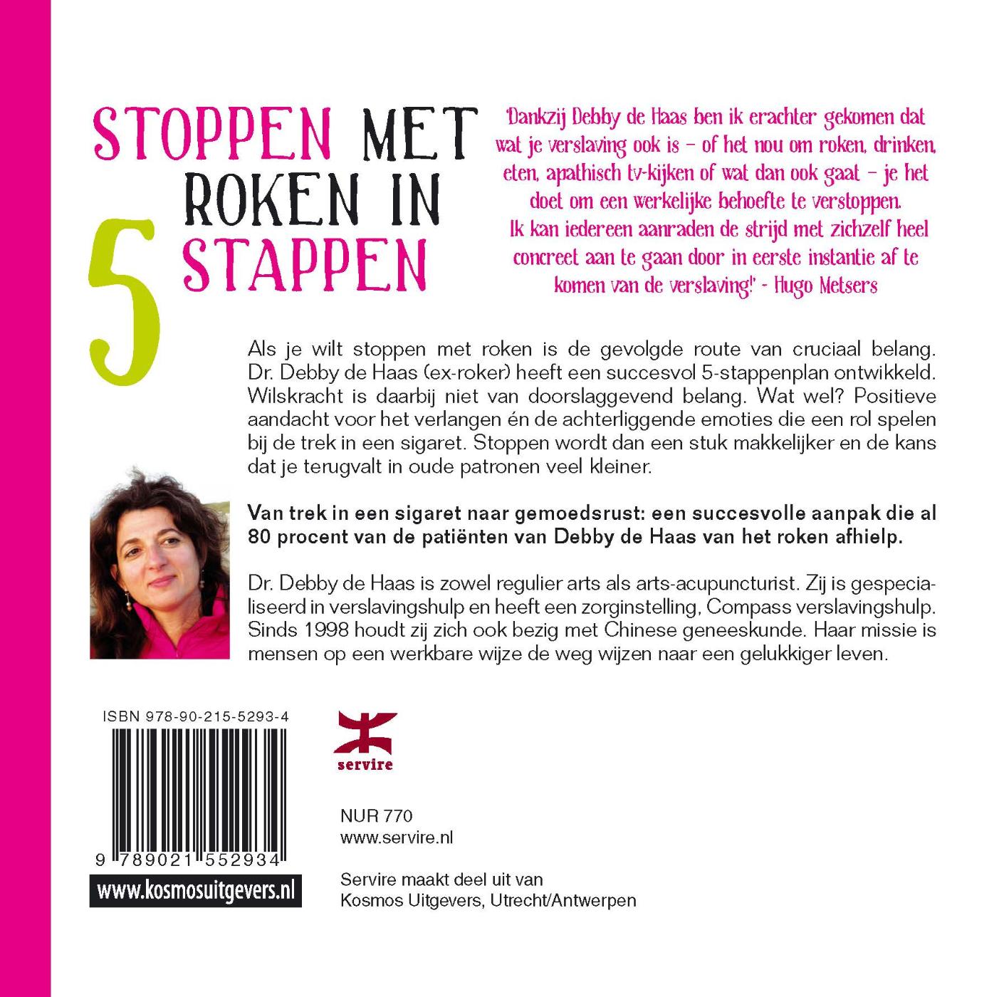 De meeste rokers willen stoppen, maar slechts een klein percentage slaagt daarin. De gevolgde route is daarbij van cruciaal belang. Dr. Debby de Haas (ex-roker) heeft een succesvol 5-stappenplan ontwikkeld. Wilskracht is daarbij niet van doorslaggevend belang. Wat wel? Positieve aandacht voor het verlangen én de achterliggende emoties die een rol spelen bij de trek in een sigaret. Stoppen wordt dan een stuk makkelijker en de kans dat je terugvalt in oude patronen veel kleiner.