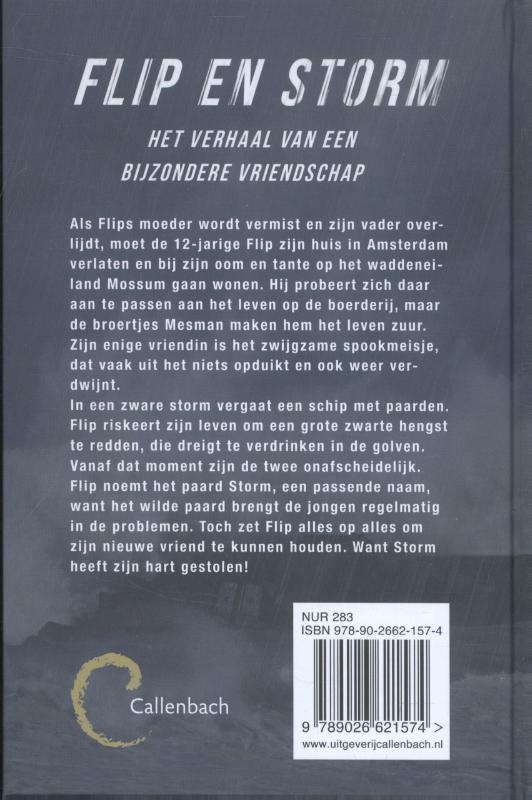 ‘Storm’ van Nick Garlick doet denken aan de boeken van Jan Terlouw en aan klassiekers als ‘Pietje Bell’, ‘Dik Trom’ en ‘Kruimeltje’. Flip moet naar het eiland Mossum, een fictief Nederlands waddeneiland, verhuizen omdat zijn vader overleden is. Daar redt hij tijdens een zware storm een paard, en ze worden goede vrienden. Maar het wilde paard heet niet voor niets Storm en zorgt voor veel problemen. Mag Flip het paard houden of zullen ze afscheid moeten nemen?