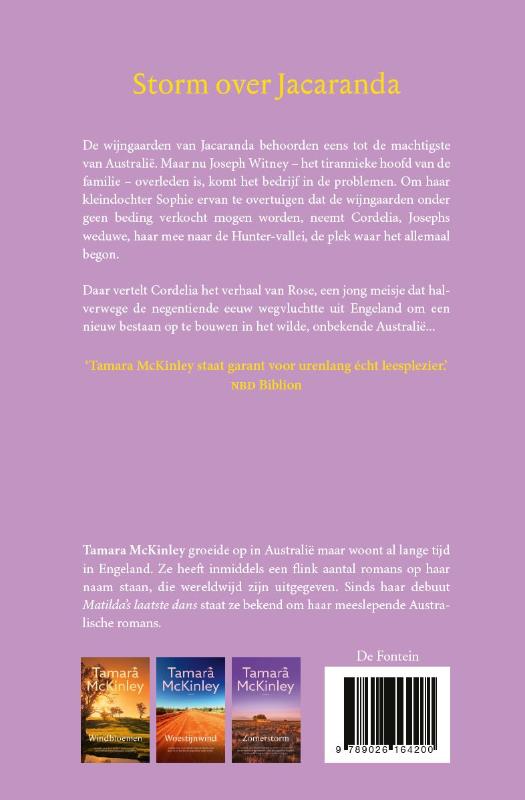 'Storm over Jacaranda' is het adembenemende verhaal over meerdere generaties van een bijzondere familie. Een geschiedenis die begint in het Britse Sussex in 1830 en eindigt in het hedendaagse Australië.