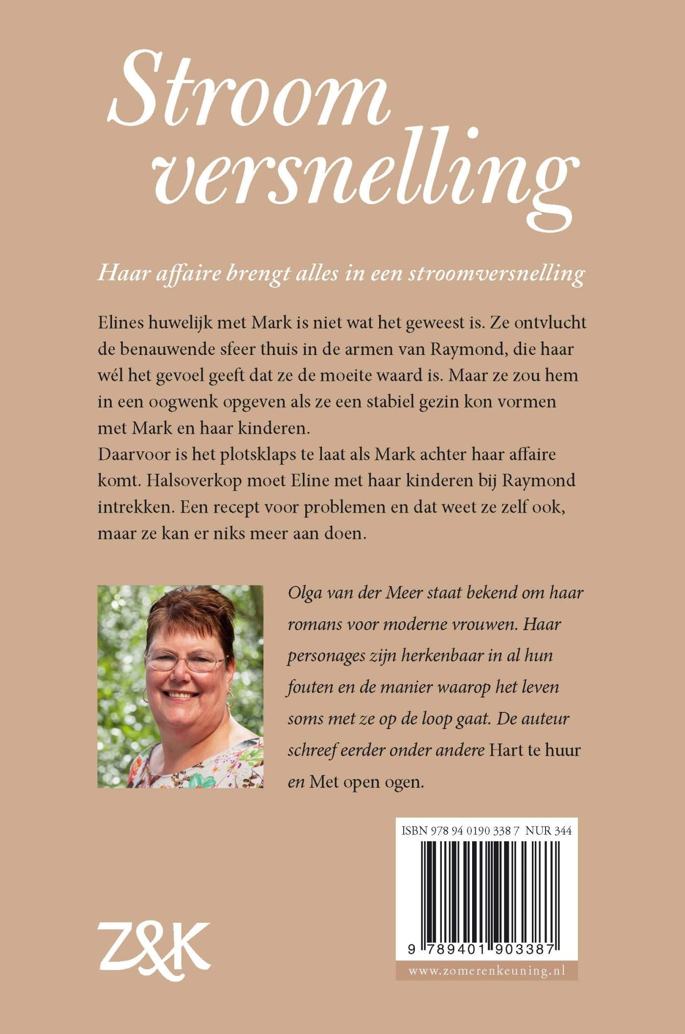 Olga van der Meer schrijft romans voor moderne vrouwen. Haar personages zijn herkenbaar in al hun fouten en de manier waarop het leven soms met ze op de loop gaat. Stroomversnelling is weer een echte Olga van der Meer, in de stijl van Hart te huur en Met open ogen.