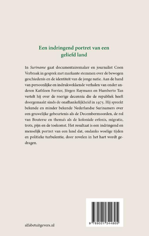 In Suriname. Een roerige geschiedenis gaat documentairemaker en journalist Coen Verbraak in gesprek met markante stemmen over de bewogen geschiedenis en de identiteit van een jonge natie. Aan de hand van persoonlijke verhalen van onder anderen Kathleen Ferrier, Jörgen Raymann en Humberto Tan vertelt hij over de roerige decennia die de republiek heeft doorgemaakt sinds de onafhankelijkheid in 1975. Hij spreekt bekende en minder bekende Nederlandse Surinamers over een gruwelijke gebeurtenis als de Decembermoorden, de rol van Bouterse en thema’s als de koloniale erfenis, migratie, trots, pijn en de toekomst. Het resultaat is een indringend en menselijk portret van een land dat, ondanks woelige tijden en politieke turbulentie, door zovelen in het hart wordt gedragen.