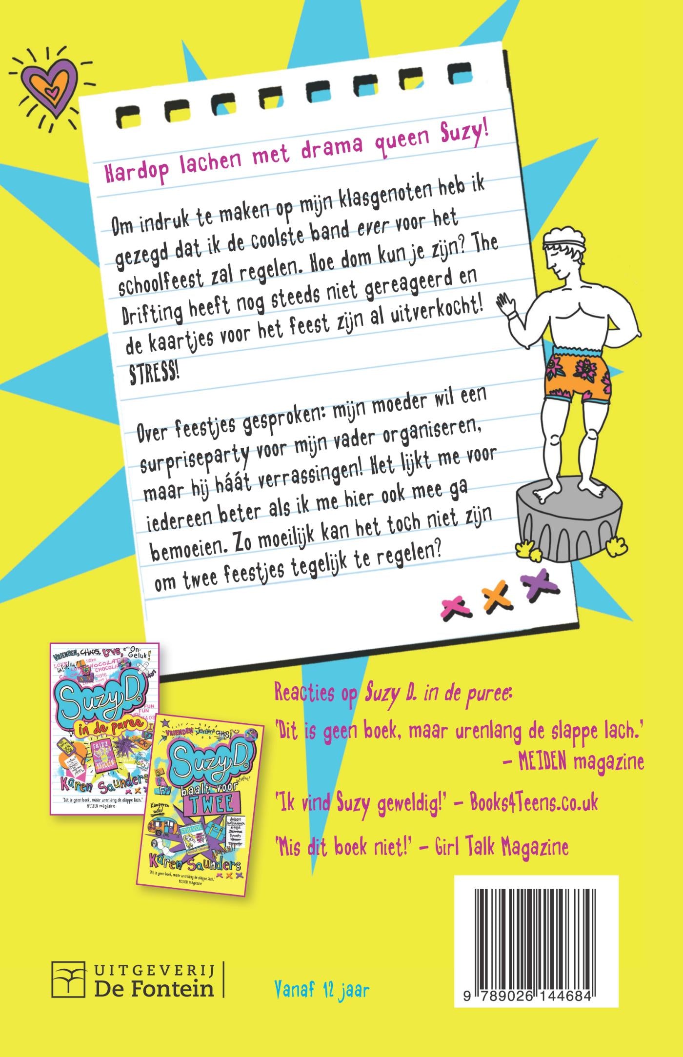 Zin om te lachen? Dan is het supergrappige boek Suzy D. feest lekker mee van Karen Saunders iets voor jou! Lees hoe Suzy in de gekste situaties verzeild raakt. Een aanrader voor de (oudere) fans van Dagboek van een muts en de 100%-serie van Niki Smit. Leeftijd: 11 tot ongeveer 15 jaar.