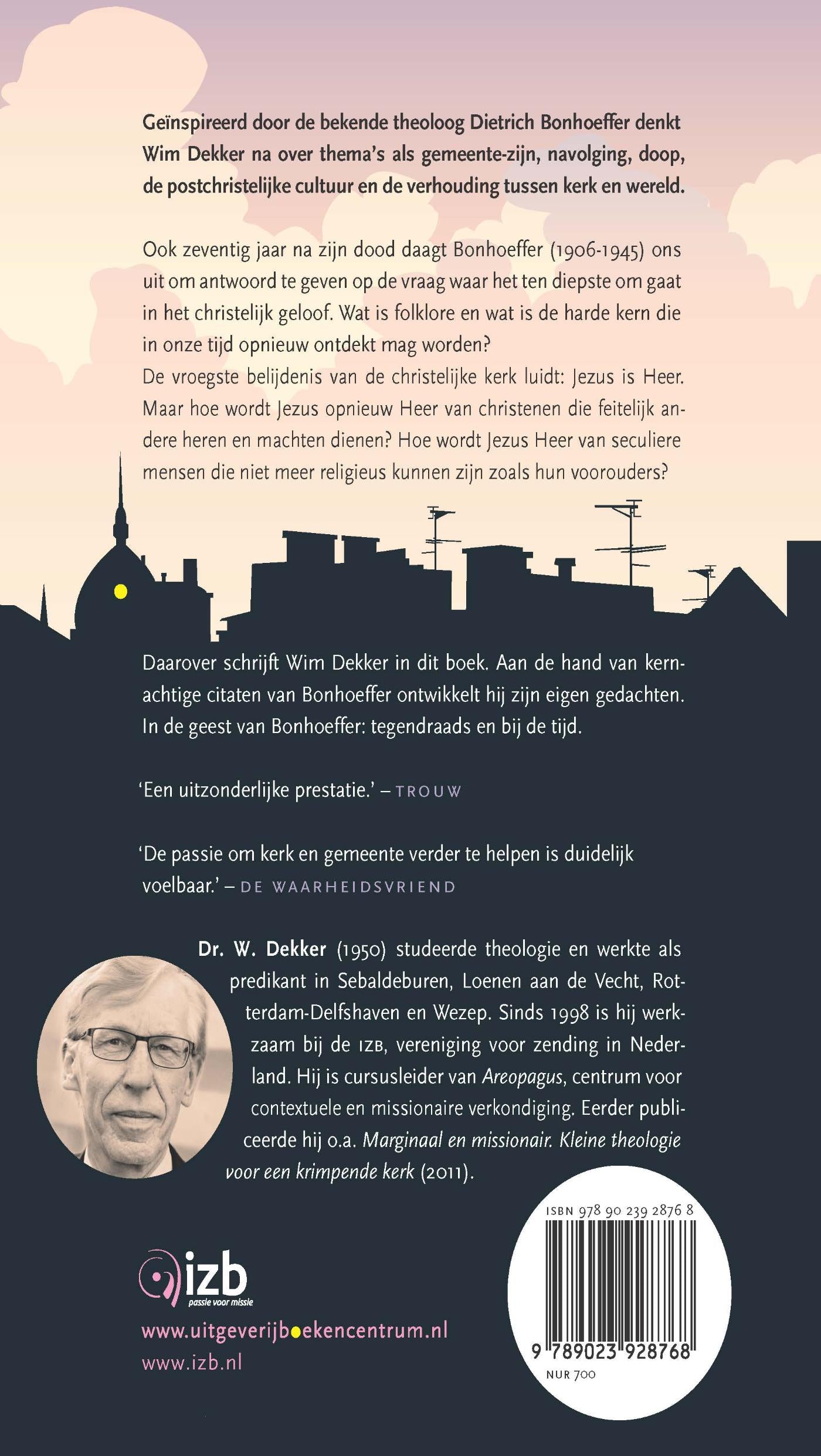 Geïnspireerd door de bekende theoloog Dietrich Bonhoeffer denkt Wim Dekker na over thema’s als gemeente-zijn, navolging, doop, cultuur en de verhouding tussen kerk en wereld.