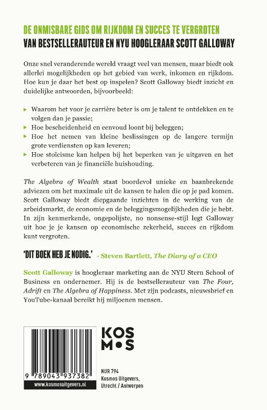 The Algebra of Wealth van hoogleraar Scott Galloway is een praktische en onmisbare gids voor meer welvaart, succes en geluk. In zijn ongepolijste no-nonsense stijl laat Galloway zien hoe je