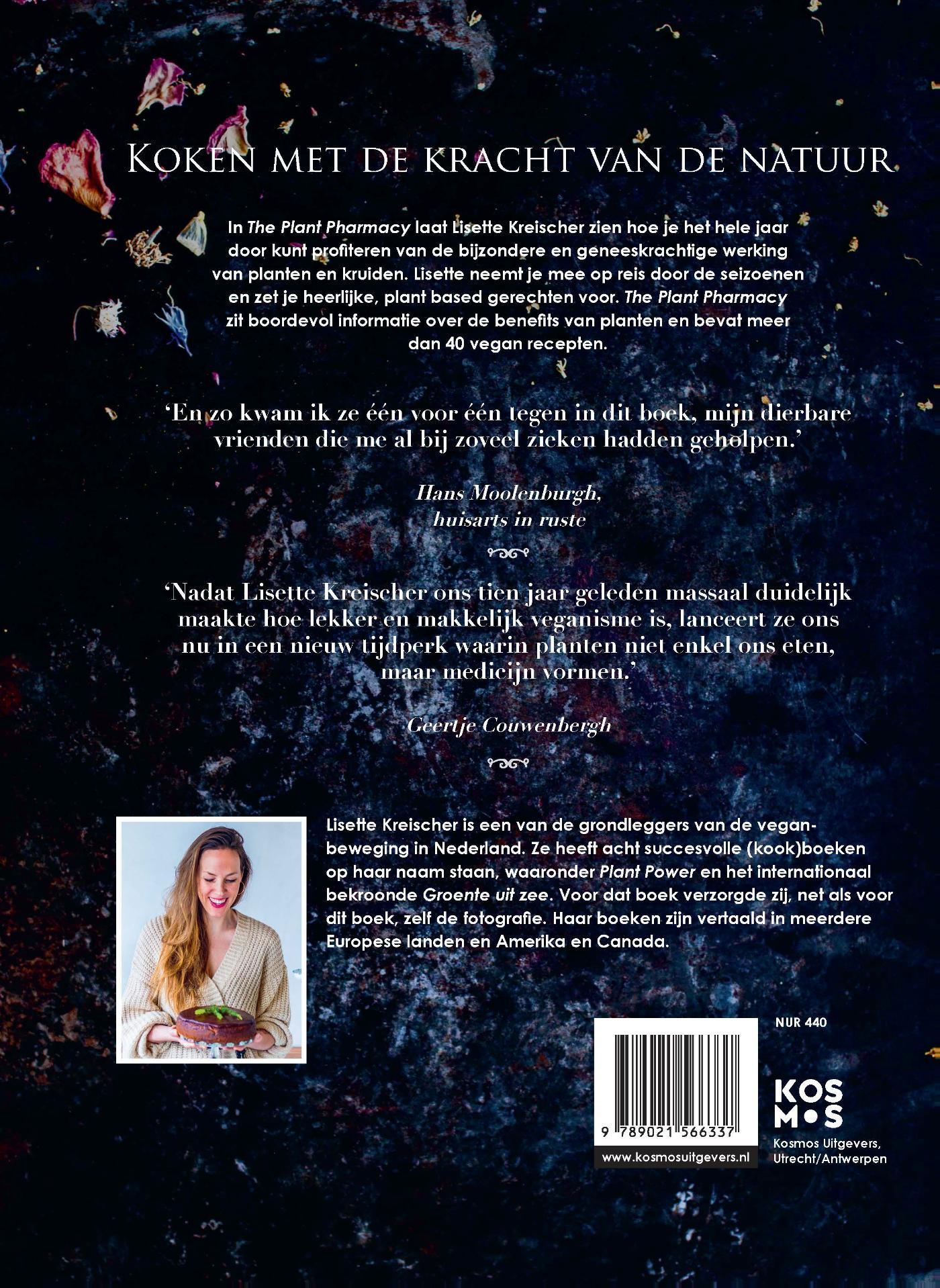 In The Plant Pharmacy, Koken met de kracht van de natuur laat Lisette Kreischer zien hoe we in elk jaargetijde kunnen profiteren van de krachtige werking van planten en kruiden. Lisette neemt ons mee op reis door de seizoenen en zet ons heerlijke, plant based gerechten voor. The Plant Pharmacy zit boordevol informatie en bevat meer dan 40 vegan recepten.