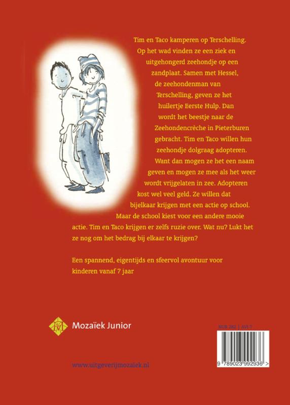 Op het wad vinden Tim en Taco een ziek en uitgehongerd zeehondje op een zandplaat. Samen met Hessel, de zeehondenman van het eiland, brengen ze het naar de Zeehondencrèche in Pieterburen. Tim en Taco willen hun zeehondje dolgraag adopteren. Want dan mogen ze het een naam geven en mogen ze mee als het weer wordt vrijgelaten in zee. Maar adopteren kost veel geld. Lukt het Tim en Taco om het bedrag bij elkaar te krijgen?