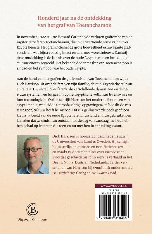 De Zweedse hoogleraar geschiedenis Dick Harrison beschrijft in ‘Toetanchamon’ het leven van de jonggestorven farao, van zijn jeugd in Amarna onder het vervloekte regime van zijn vader, zijn regeerperiode in Memphis tot zijn graf in Thebe. Honderd jaar na de ontdekking van de tombe van Toetanchamon door Howard Carter en tweehonderd jaar na de ontcijfering van de steen van Rosetta staat Egypte dit najaar in het middelpunt van de belangstelling. ‘Toetanchamon’ van Dick Harrison is in kleur en voorzien van afbeeldingen van veel van de 5400 objecten uit Toetanchamons grafkamer.