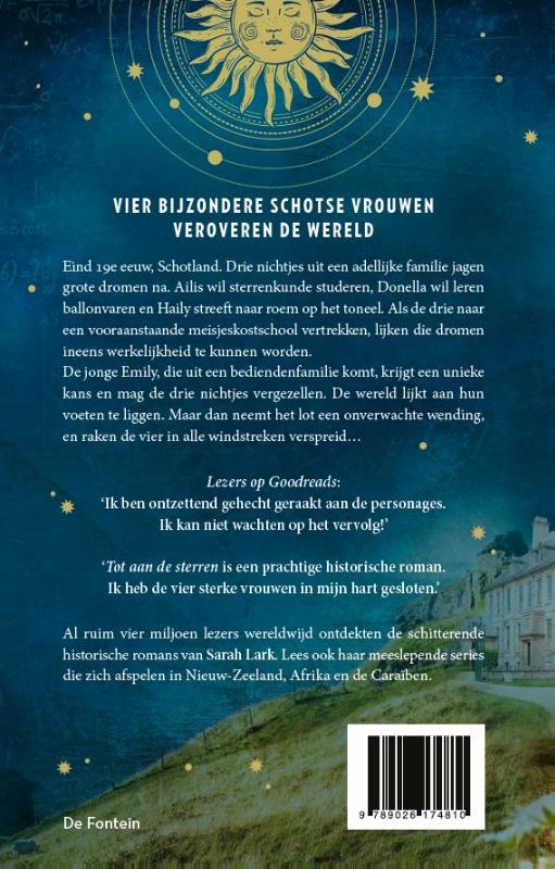 Tot aan de sterren is het eerste boek in de Wereldvrouwen-serie van Sarah Lark. Lees meer over de belevenissen van Ailis, Donella, Haily en Emily in het vervolg, Een droom achterna.