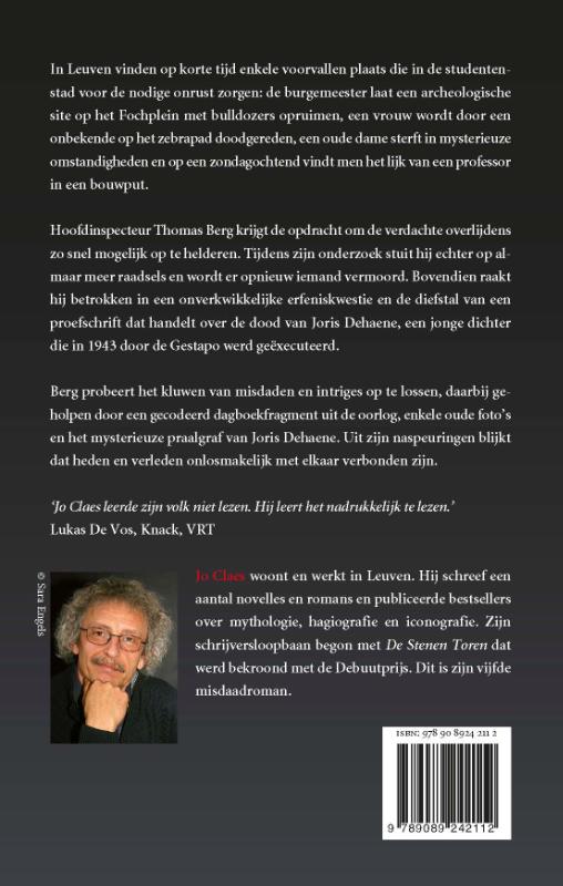 Hoofdinspecteur Thomas Berg krijgt de opdracht om de verdachte overlijdens zo snel mogelijk op te helderen. Tijdens zijn onderzoek stuit hij echter op almaar meer raadsels en wordt er opnieuw iemand vermoord. Bovendien raakt hij betrokken in een onverkwikkelijke erfeniskwestie en de diefstal van een proefschrift dat handelt over de dood van Joris Dehaene. Deze jonge dichter werd in 1943 door de Gestapo geëxecuteerd.